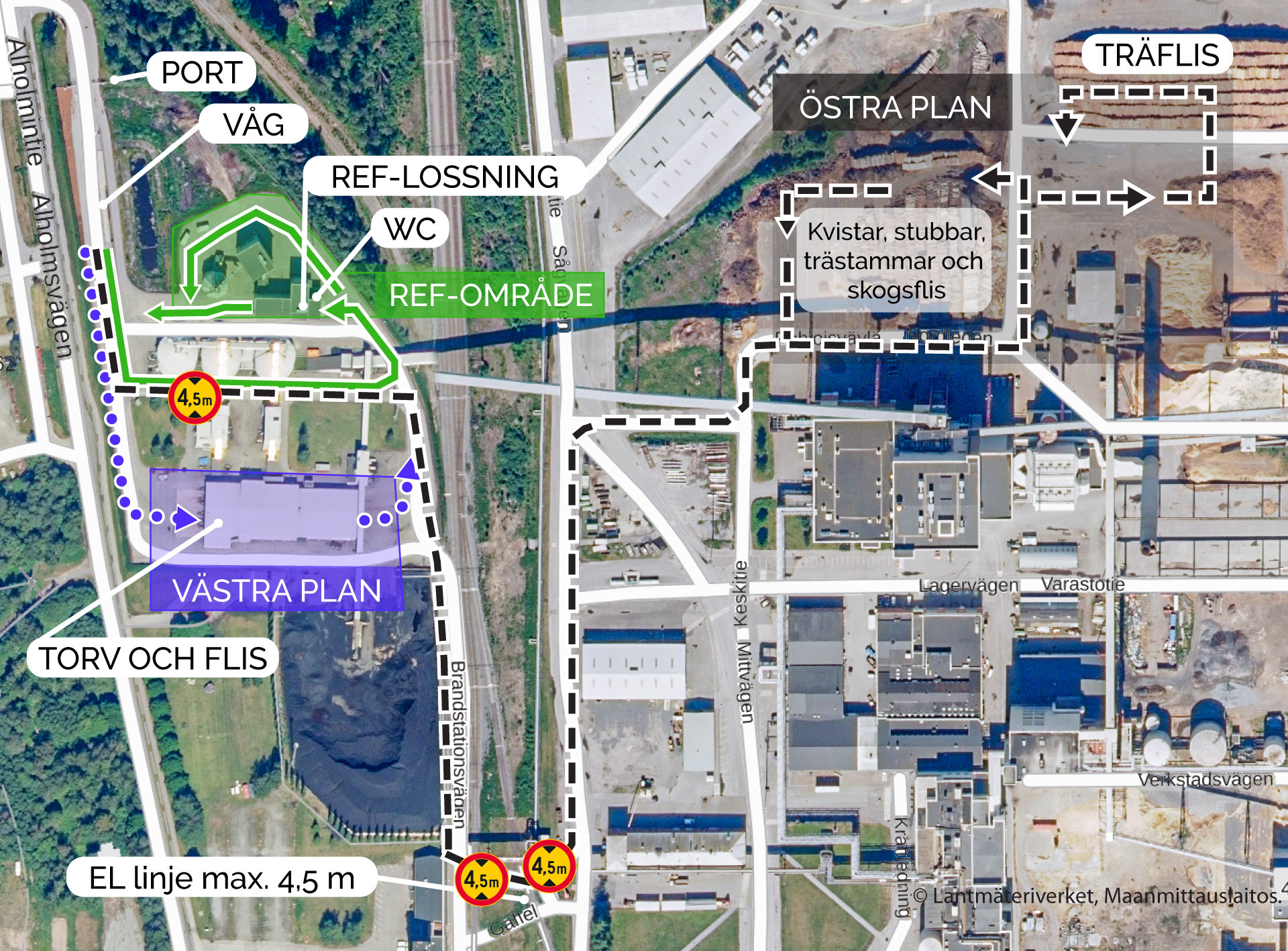 För tillträde till Alholmens Krafts och UPM:s fabriksområde i Jakobstad